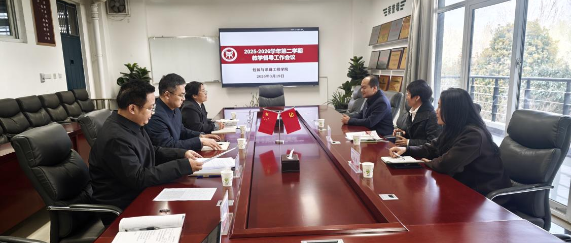 为充分发挥教学督导在提升课堂教学质量、加强课程资源建设中的重要作用,2026年3月19日上午,包装与印刷工程学院召开2025-2026学年第二学期期初教学督导工作会议。学校教学督导张焕教授应邀出席、学院党委书记杨军、副院长刘士伟、苗红涛、卢芳芳,教学办公室主任薛阳及教师代表参加会议,会议由副院长苗红涛主持。