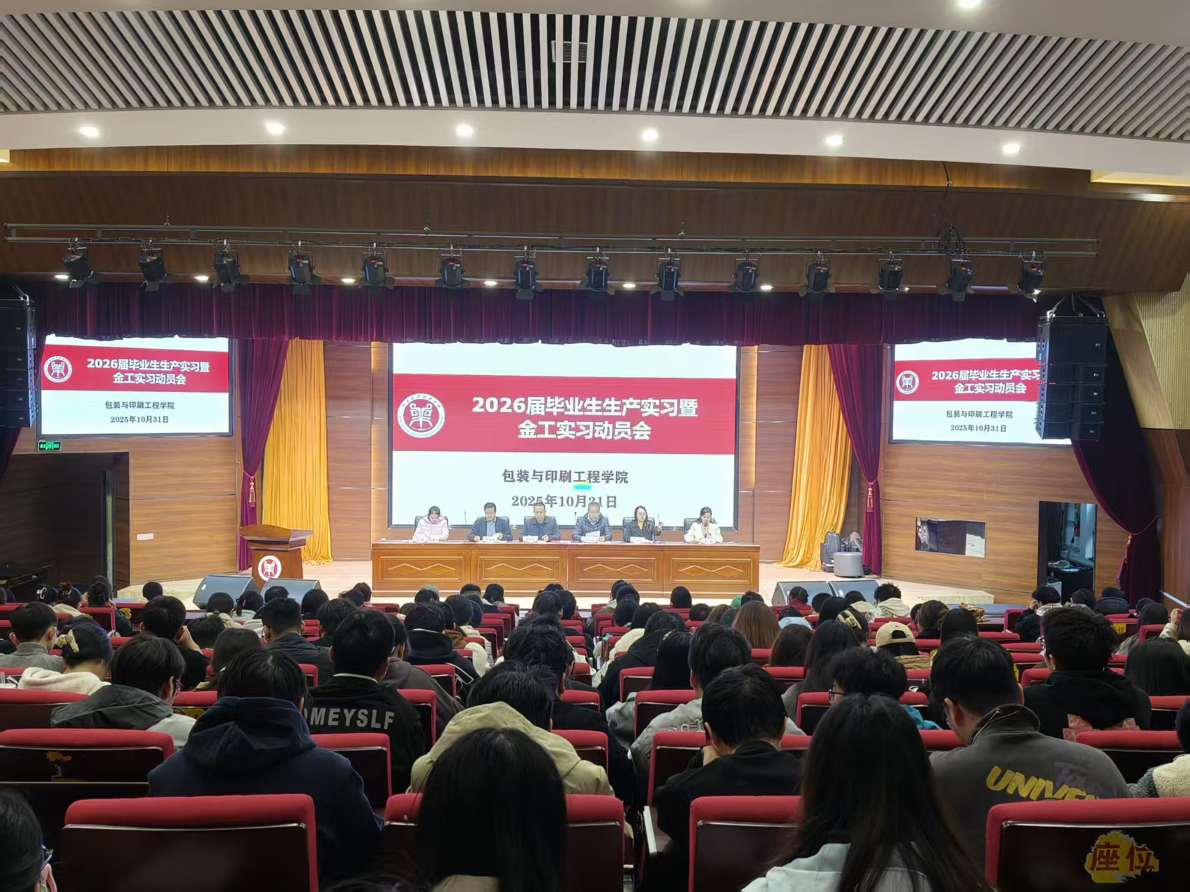 为做好2026届毕业生的生产实习工作,保证金工实习安全、有序进行,10月31日上午,包装与印刷工程学院在一号教学楼合100报告厅召开了2026届毕业生生产实习暨金工实习动员会。包装与印刷工程学院党委副书记李帅堂、副院长苗红涛、教科研办公室主任王麟、包装教研室主任卢芳芳、印刷教研室主任李俊锋、团委书记段婧以及2026届包装工程和印刷媒体技术专业全体学生参加。会议由段婧主持。